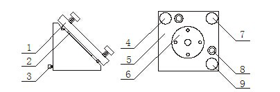 1.反射鏡調(diào)整板 2.反射鏡 3.鎖緊螺絲 4.調(diào)節(jié)螺絲M1 5. 反射鏡調(diào)整板6.反射鏡壓緊板 7.調(diào)節(jié)螺絲M 8.鎖緊螺絲 9.調(diào)節(jié)螺絲M2